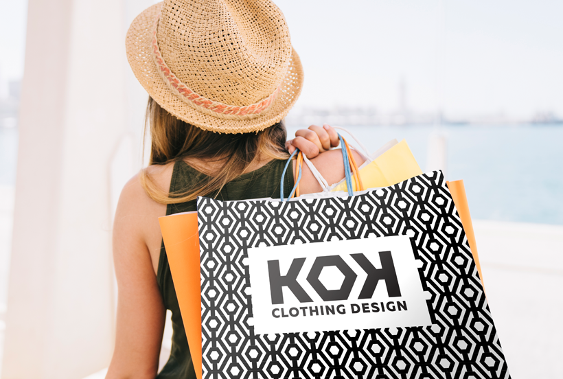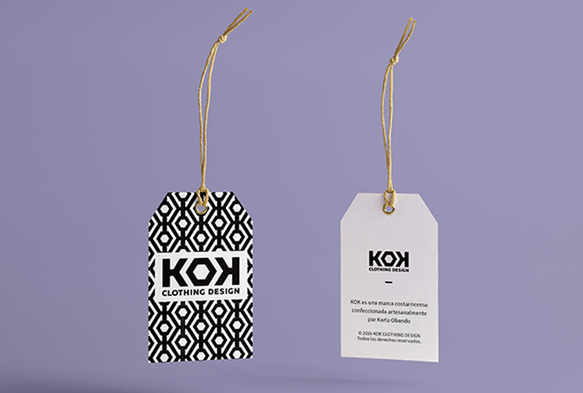 KOK Creación de identidad y entorno para una marca personal de costura y diseño artesanal costarricense. Diseñamos la etiqueta y el empaque.